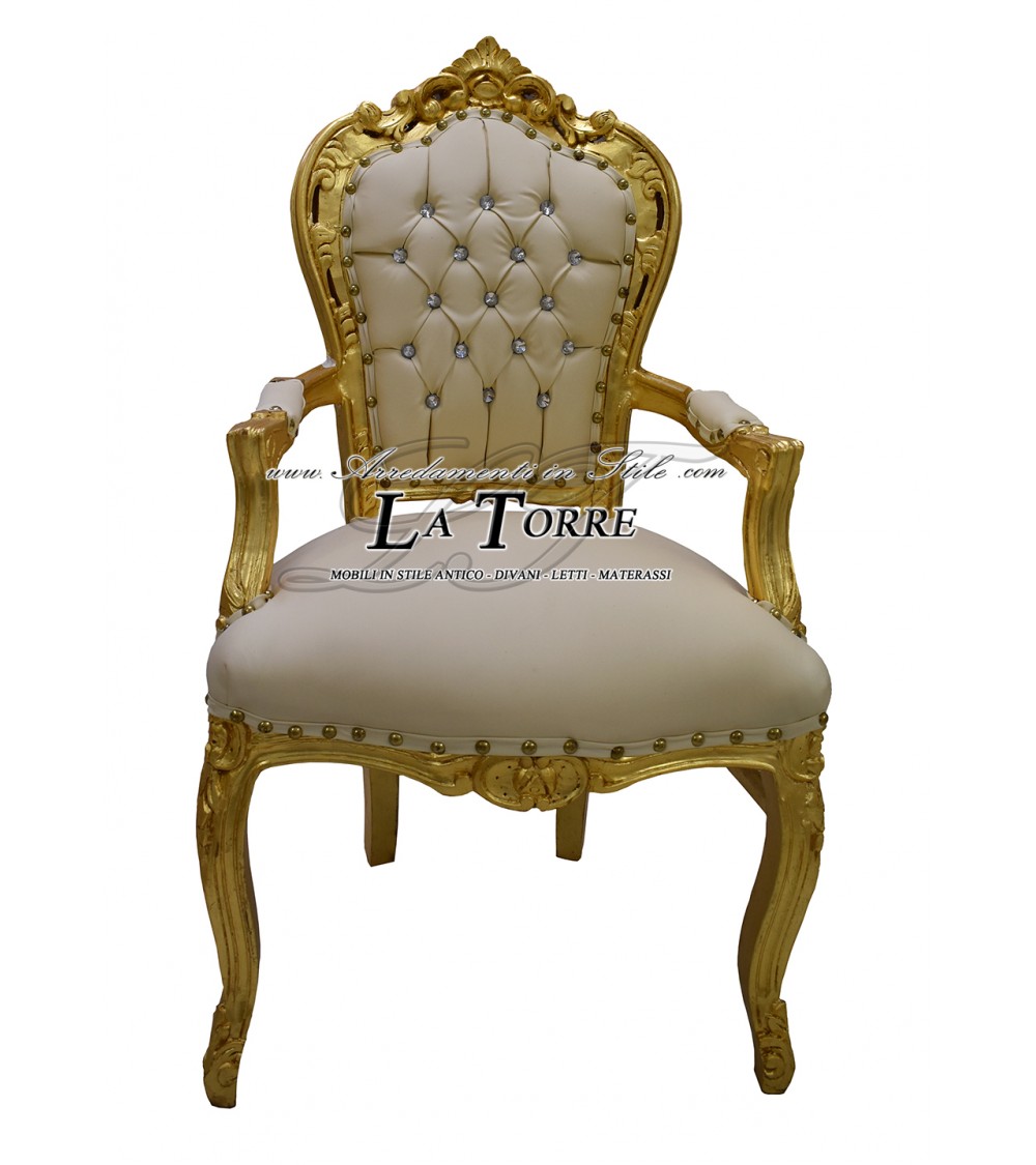 Sedia Poltrona Still Luigi XV Barocco Impero struttura oro ecopelle avorio AL2729