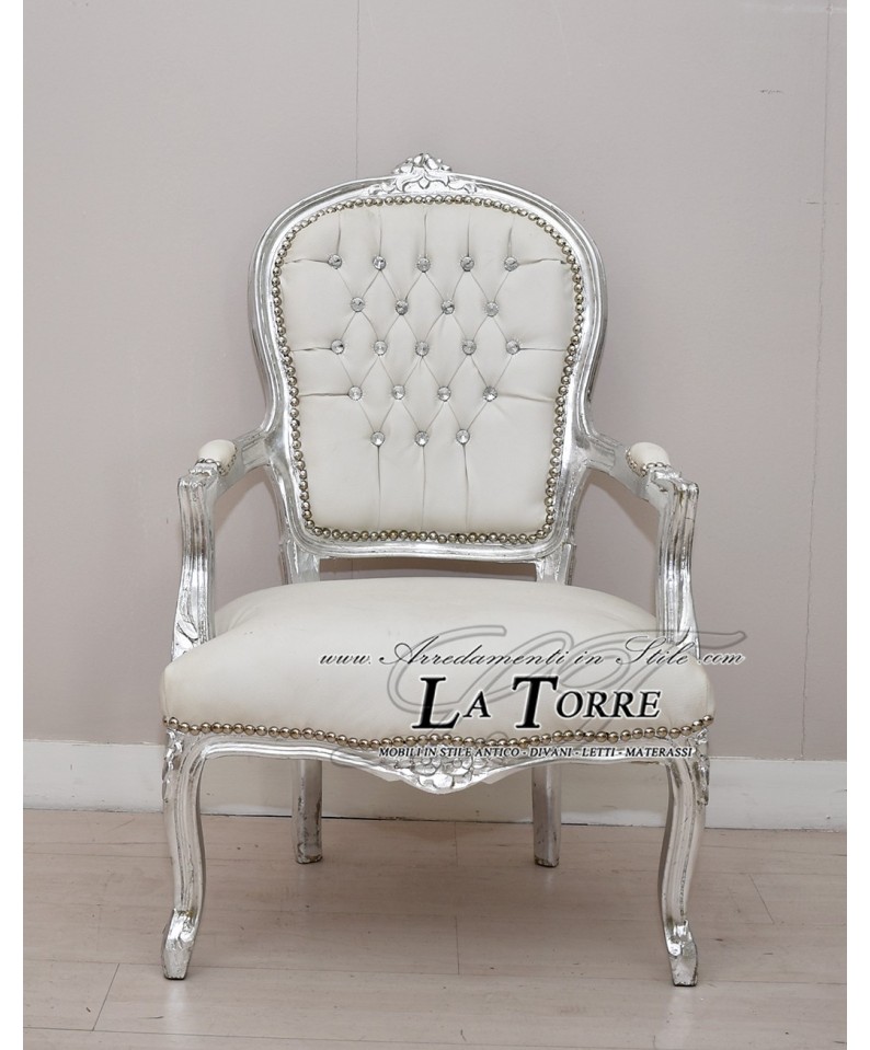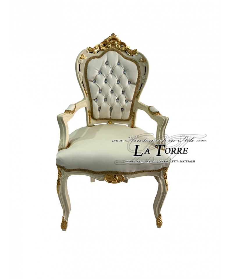 Sedia Poltrona Still Luigi XV Barocco Impero avorio oro ecopelle avorio AL2729