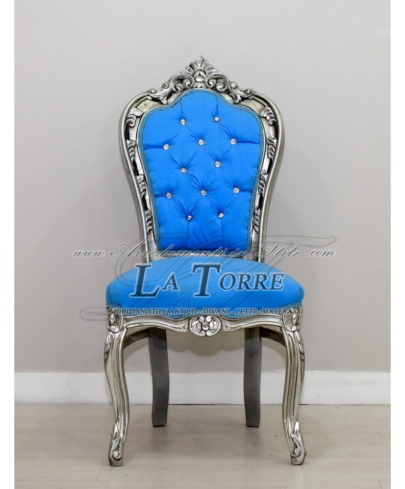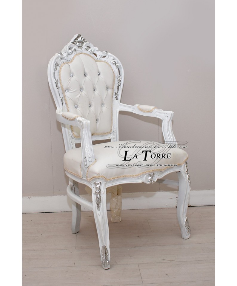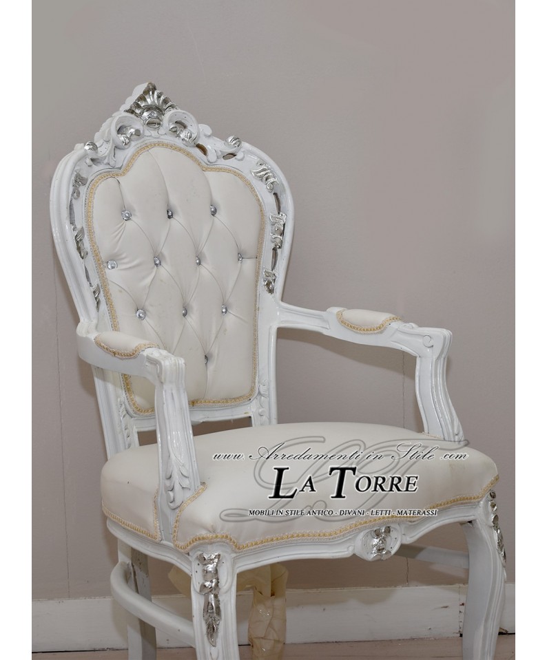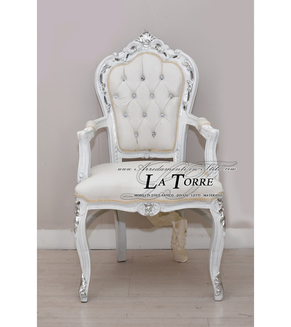Sedia Poltrona Still Luigi XV Barocco Impero bianco argento ecopelle AL2729