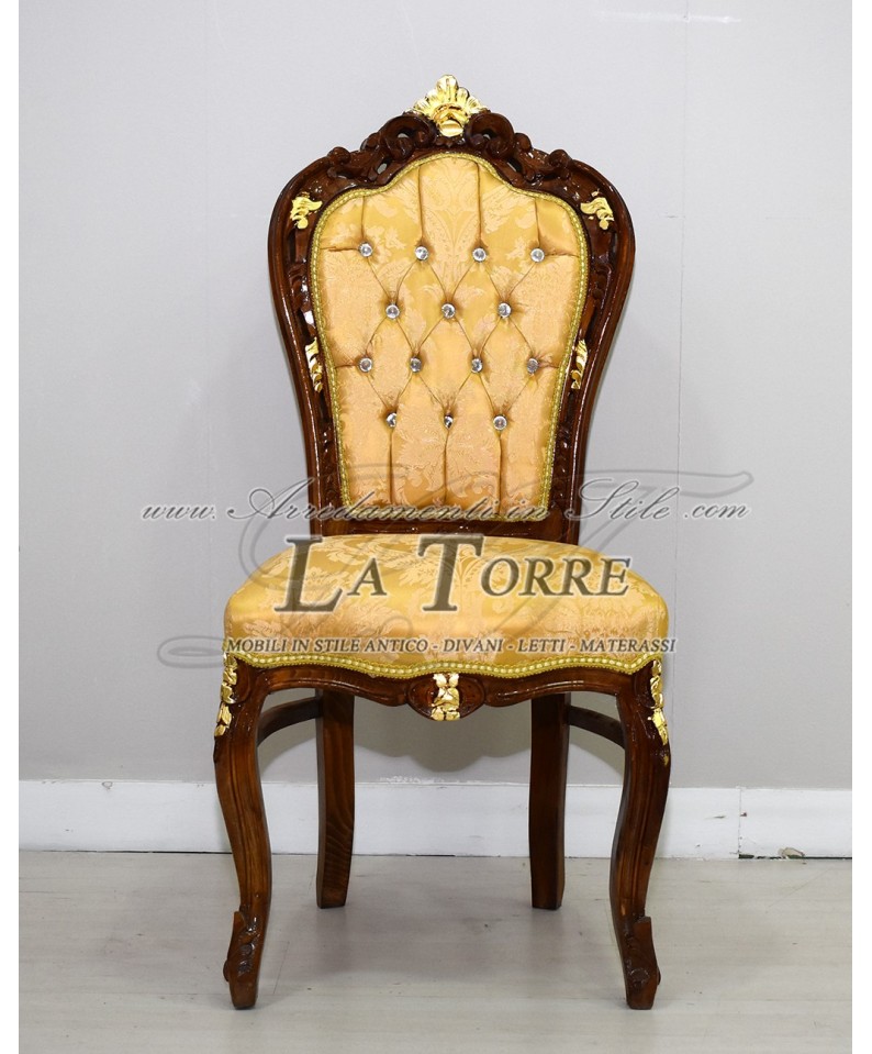 Poltrona sedia still , con struttura realizzata in legno pregiato, in laccatura bianca con particolari in foglia argento , sapientemente intagliato con motivi curvilinei che ne esaltano la forma regale. Lo schienale e la seduta sono imbottiti e rivestiti in ecopelle bianco latte con una lavorazione capitonnè sullo schienale che aggiunge profondità e raffinatezza. I braccioli sono imbottiti e rivestiti della stessa ecopelle, i bottoni a vista sullo schienale non sono semplici borchie, ma swarovski che catturano la luce, conferendo un ulteriore elemento di lusso. I dettagli , finemente applicati sulle curve dello schienale e sulla parte superiore delle gambe anteriori, arricchiscono ulteriormente il design, creando un contrasto visivo accattivante con il legno in laccatura bianca e particolari foglia argento e ecopelle bianco latte.