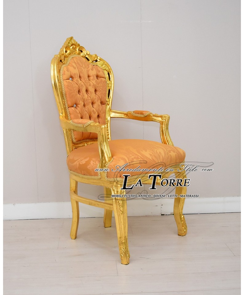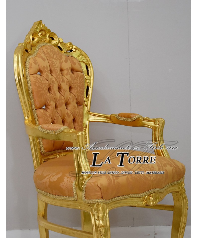 Sedia Poltrona Still Luigi XV Barocco Impero oro tessuto damascato giglio AL2729