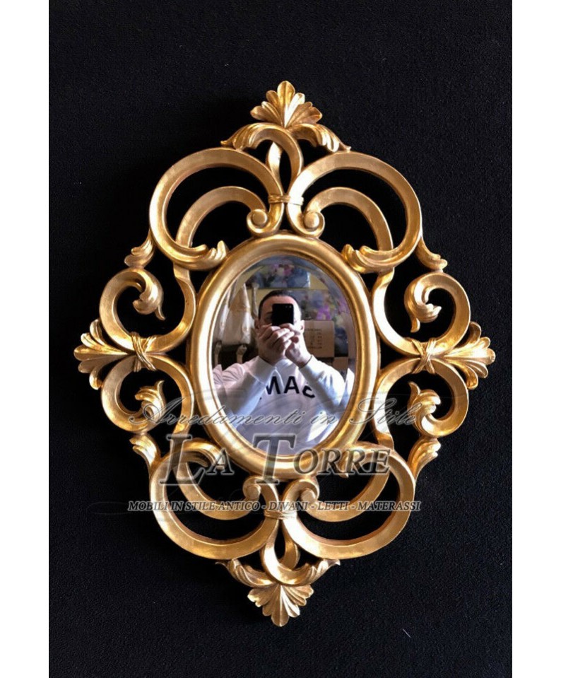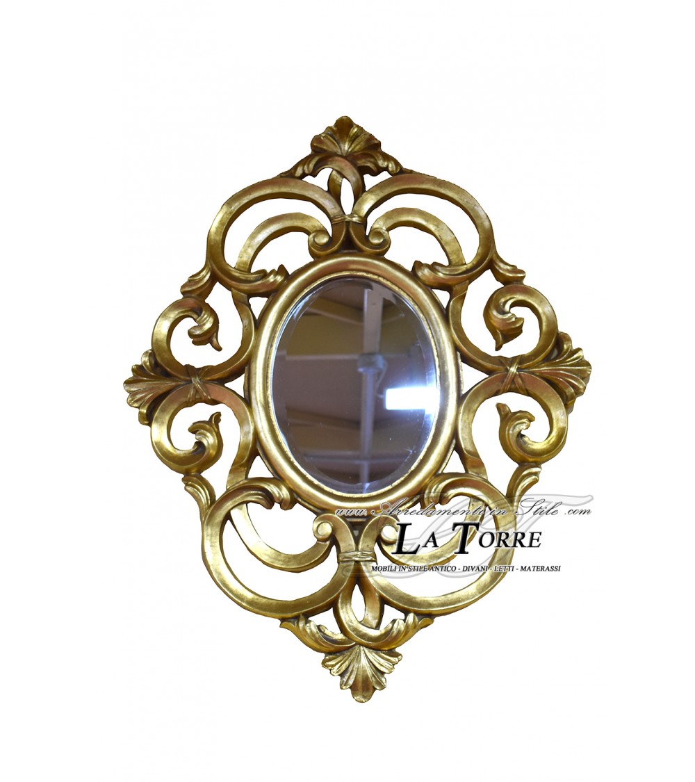 Specchiera traforata ovale oro antica specchio molato barocco da parete S35