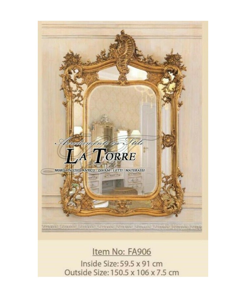 Specchiera da parete classica foglia oro stile antico vetro molato barocco FA906