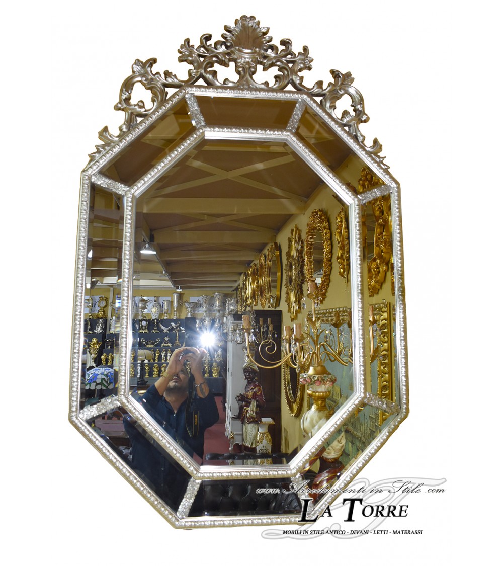 Specchiera classica foglia argento stile antico vetro molato barocco parete Pu924