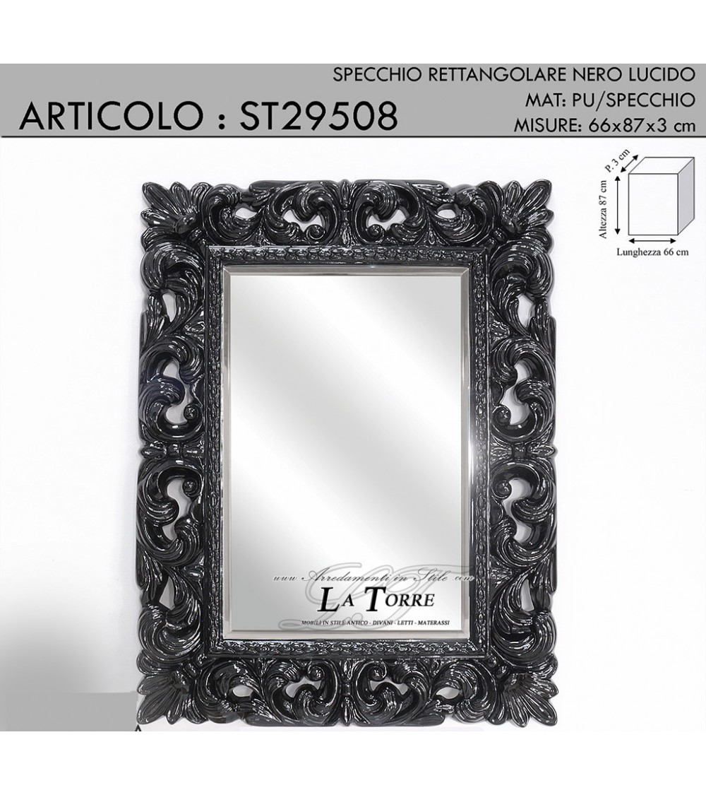 Specchiera rettangolare stile barocco traforata nero lucido specchio molato da parete St29508