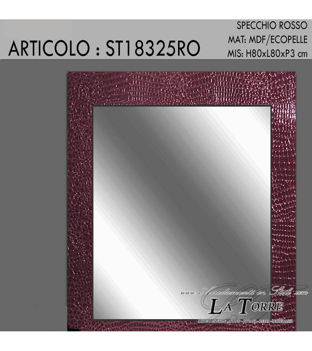 Specchiera quadrato stile moderno cocco rosso lucido specchio molato da parete St18325RO