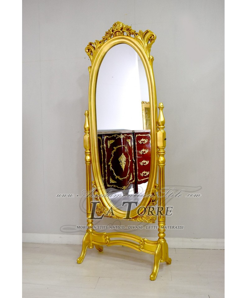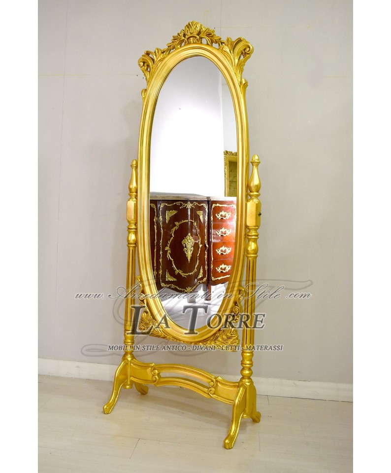 Specchiera da terra ballerina basculante intagliata Luigi XV barocco oro AL7375