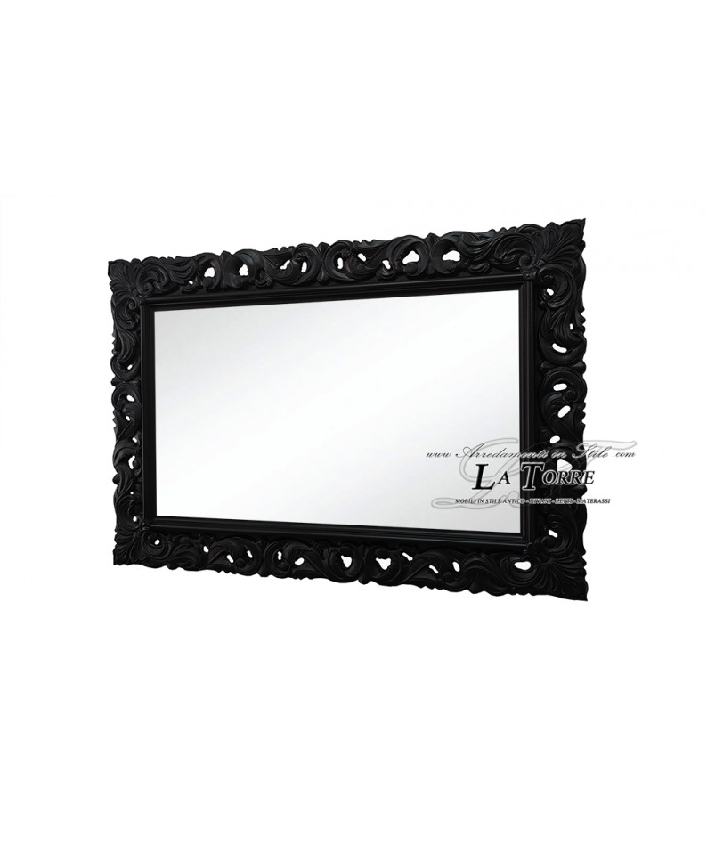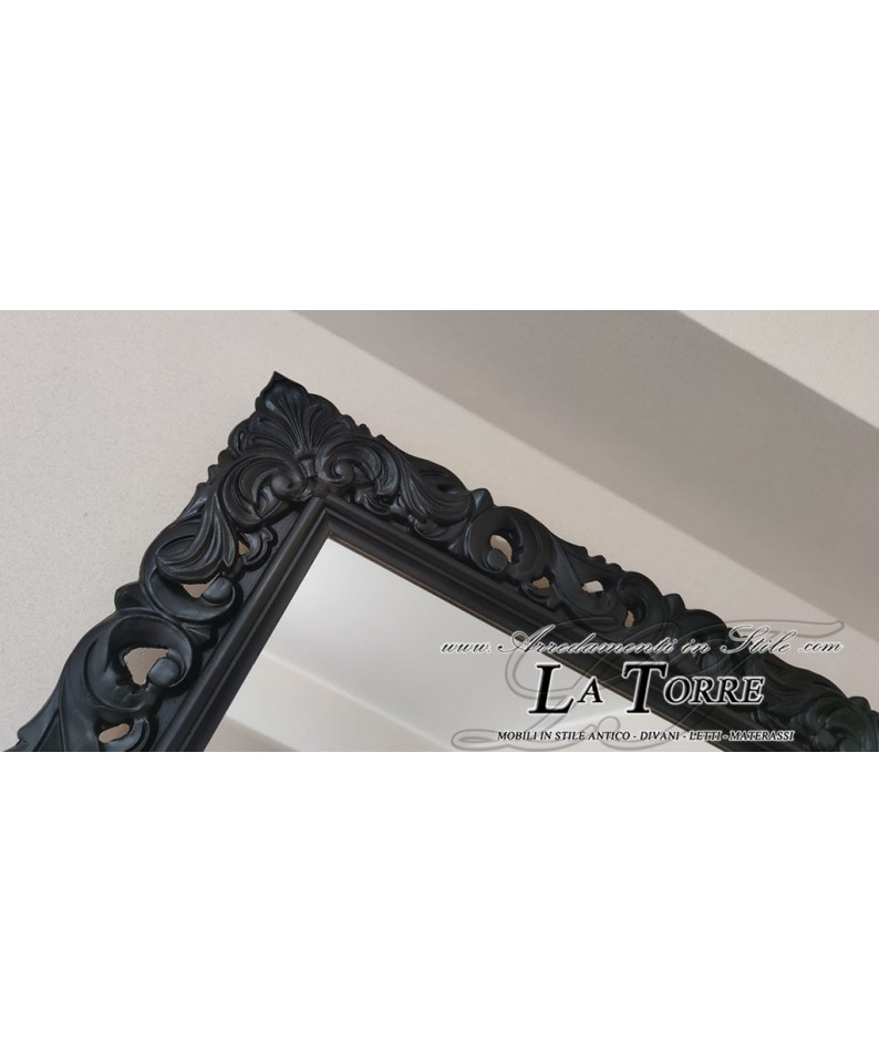 Specchio specchiera cornice classica traforata stile barocco su misura legno nera 1135n