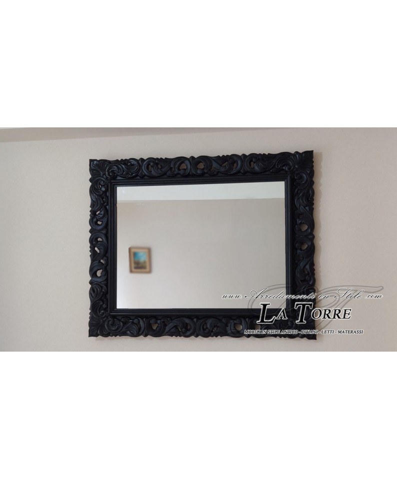 Specchio specchiera cornice classica traforata stile barocco su misura legno nera 1135N