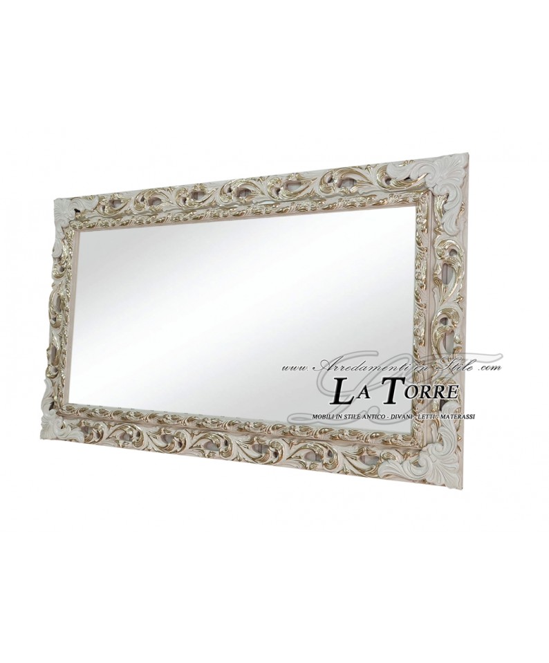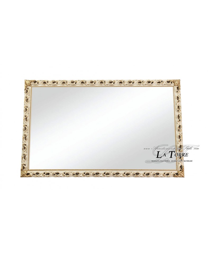 Specchio specchiera classica cornice traforata quadro legno Avorio e oro stile barocco GGAVO