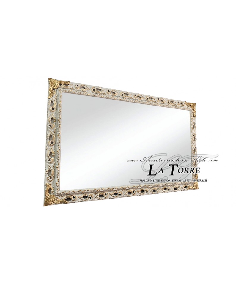 Specchio specchiera classica cornice traforata quadro legno Avorio e oro stile barocco GGAVO