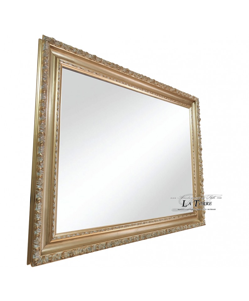 Specchiera specchio barocco oro con particolari avorio cornice classica traforata su misura legno 1045