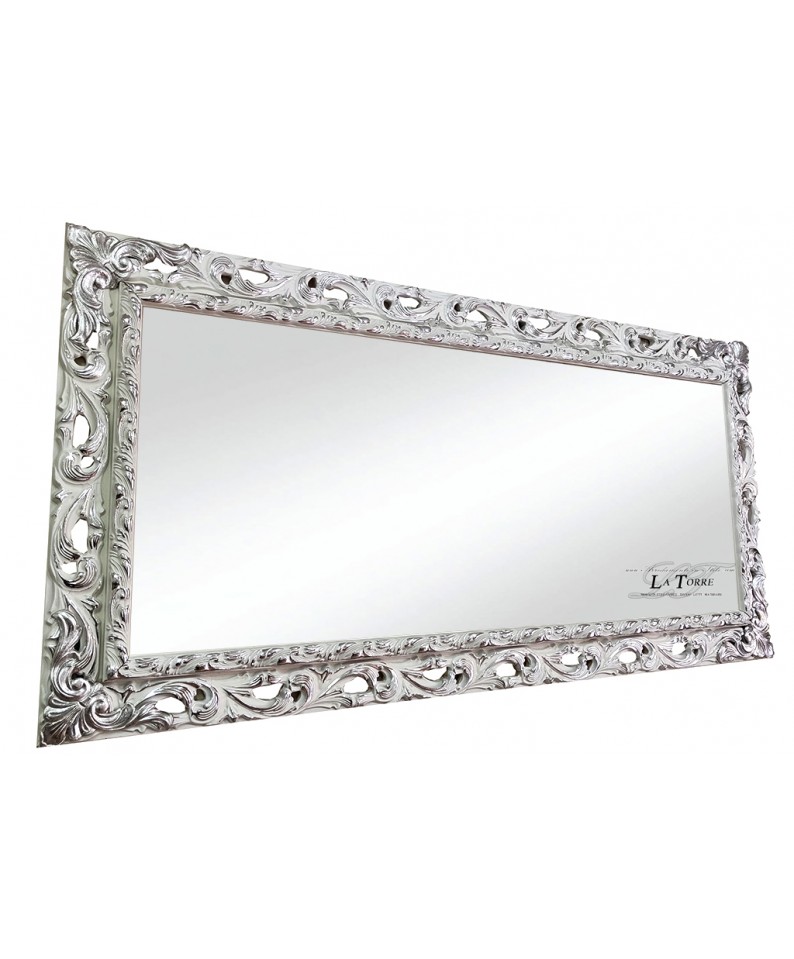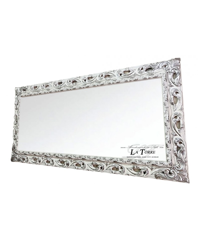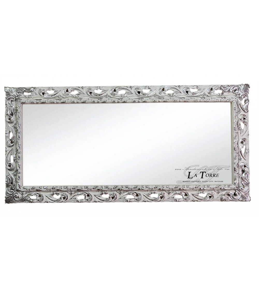 Specchio barocco specchiera da parete cornice traforata classica bianca argento barocco GGBA