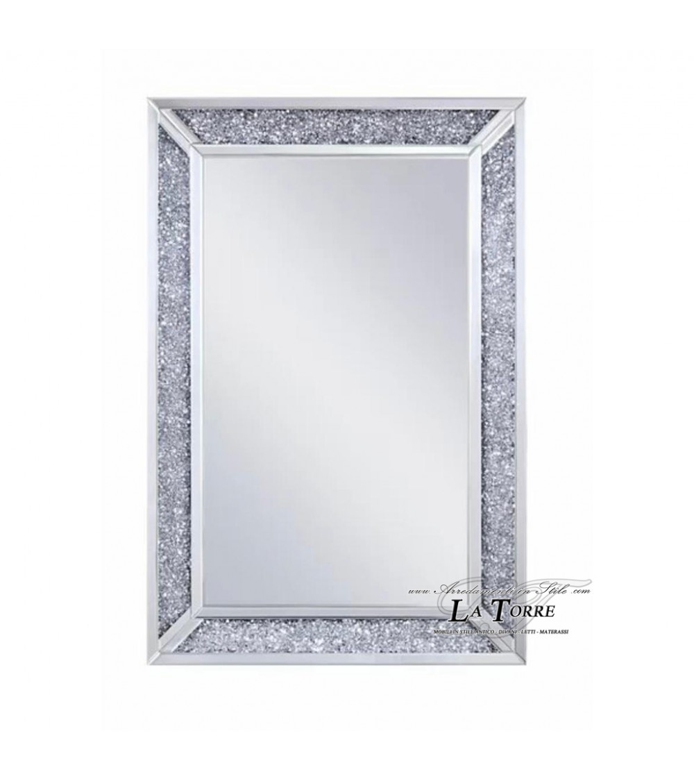 Raffinato specchio rettangolare di design con cornice decorata da cristalli Swarovski, ideale per dare luce e prestigio ai tuoi ambienti. La superficie specchiata di alta qualità riflette l’ambiente con nitidezza, mentre la cornice scintillante crea un effetto scenografico unico.