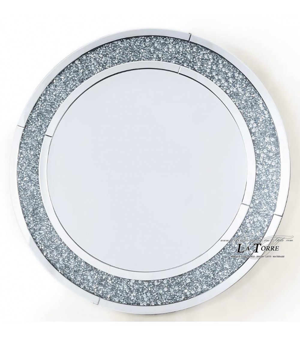 Specchio Rotondo con Cristalli Swarovski – Cornice Specchiata Lusso Ø90 cm CBM1234