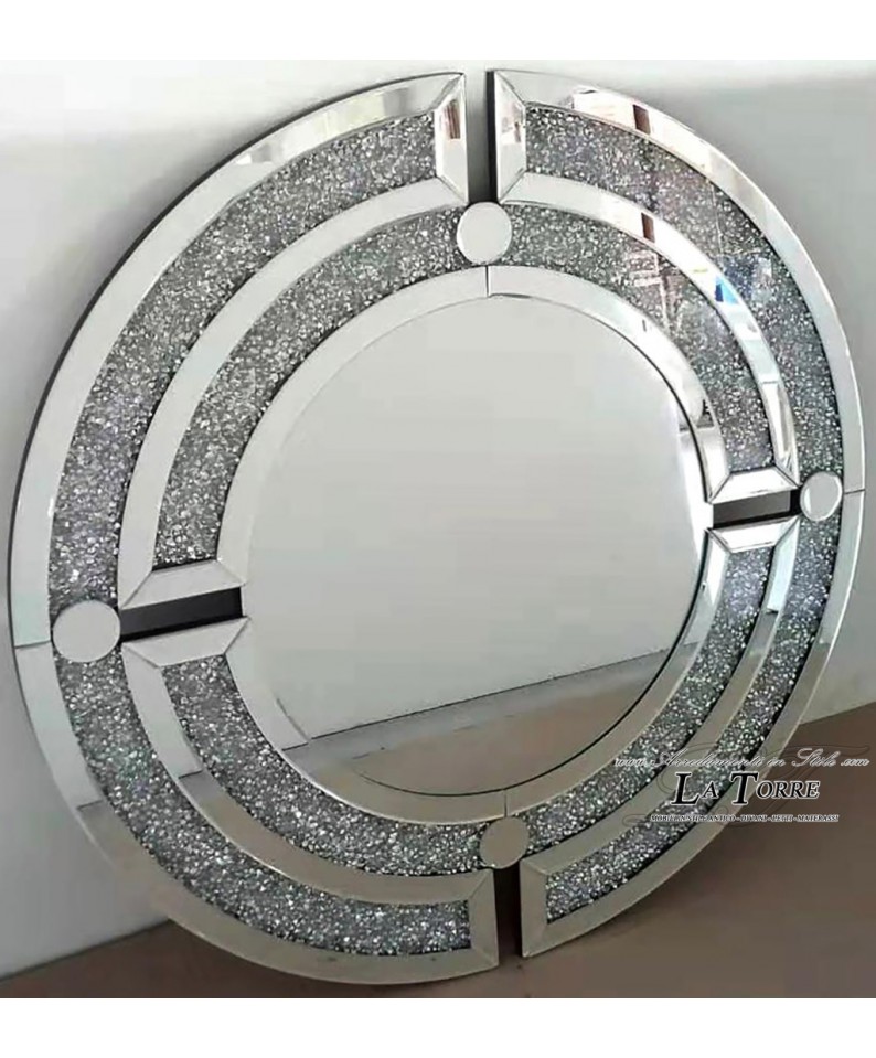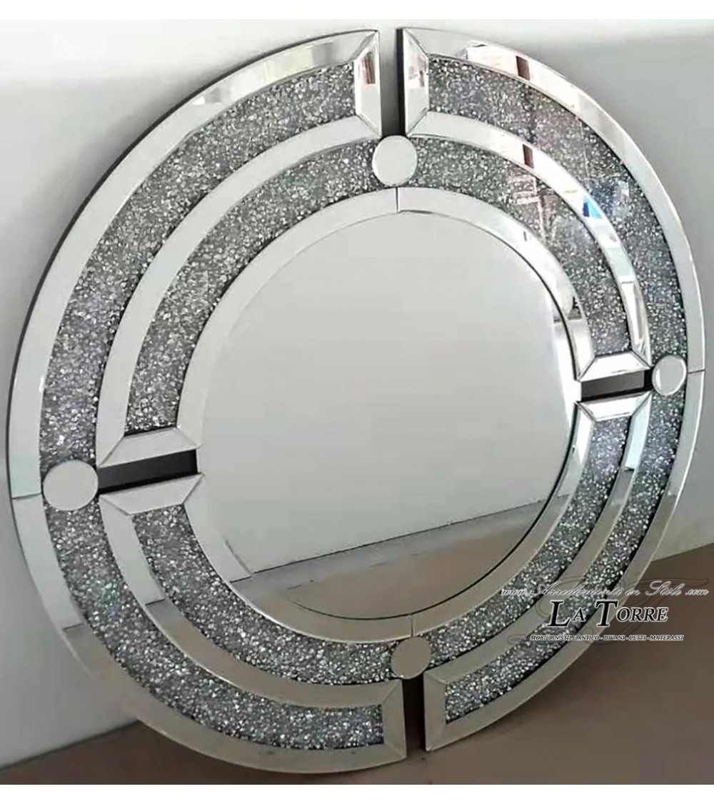 Specchio Rotondo con Cristalli Swarovski – Design Geometrico Moderno Lusso Ø90 cm CBM1411