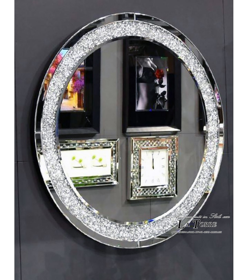 Specchio Rotondo con Cristalli Swarovski – Cornice Brillante Moderno Lusso Ø80 cm CBM012