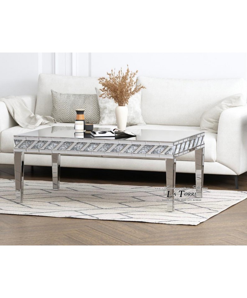Rinnova il tuo salotto con questo tavolino interamente specchiato, impreziosito da brillanti dettagli Swarovski, simbolo di lusso e raffinatezza.