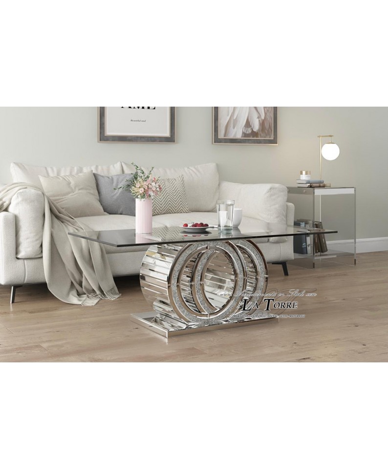 Ordina subito il tuo tavolino specchiato con dettagli Swarovski e base circolare e trasforma il tuo soggiorno in uno spazio luminoso, raffinato e di grande fascino.