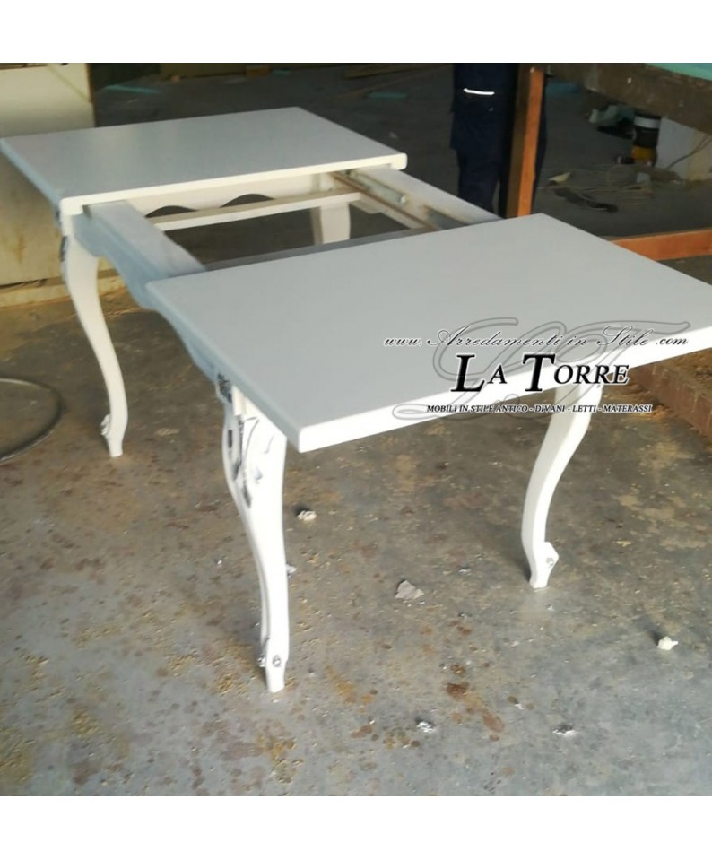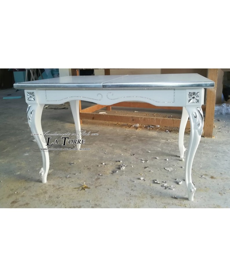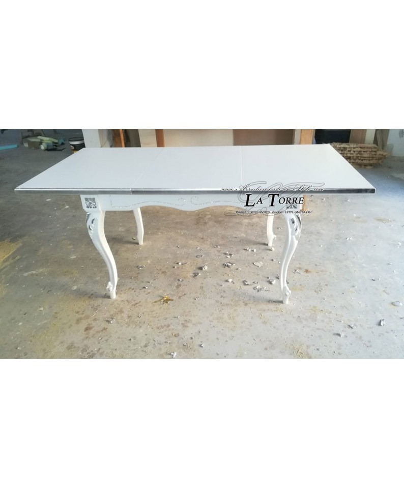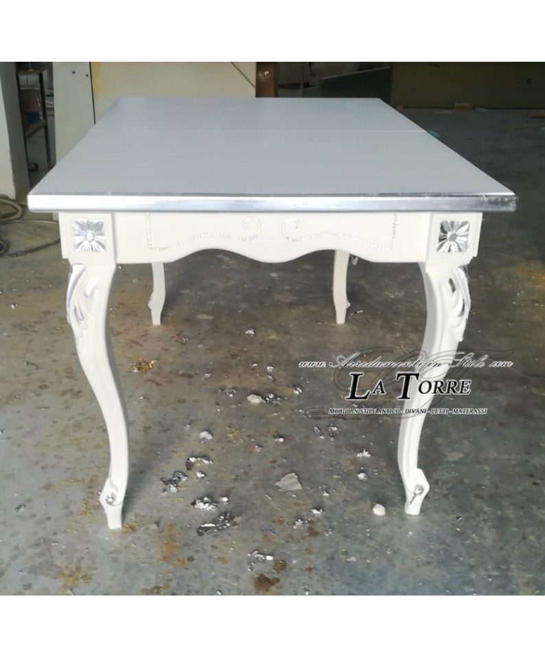 Tavolo rettangolare da pranzo classico barocco 150 cm allungabile 200 bianco argento in legno TA01