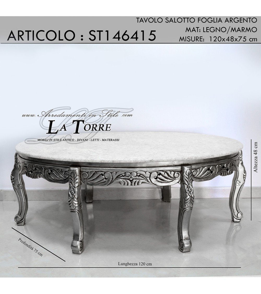 Tavolo basso da salotto ovale antico tavolino thé argento barocco marmo st146415
