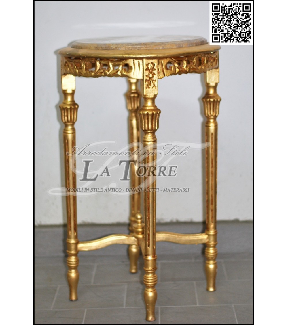 Tavolino alzatina stile barocco legno foglia oro piano in marmo Luigi Xv AL6971