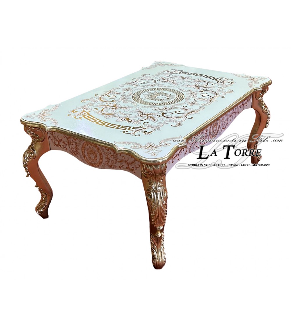 Tavolino rettangolare basso da salotto caffè the avorio oro barocco Medusa MED17