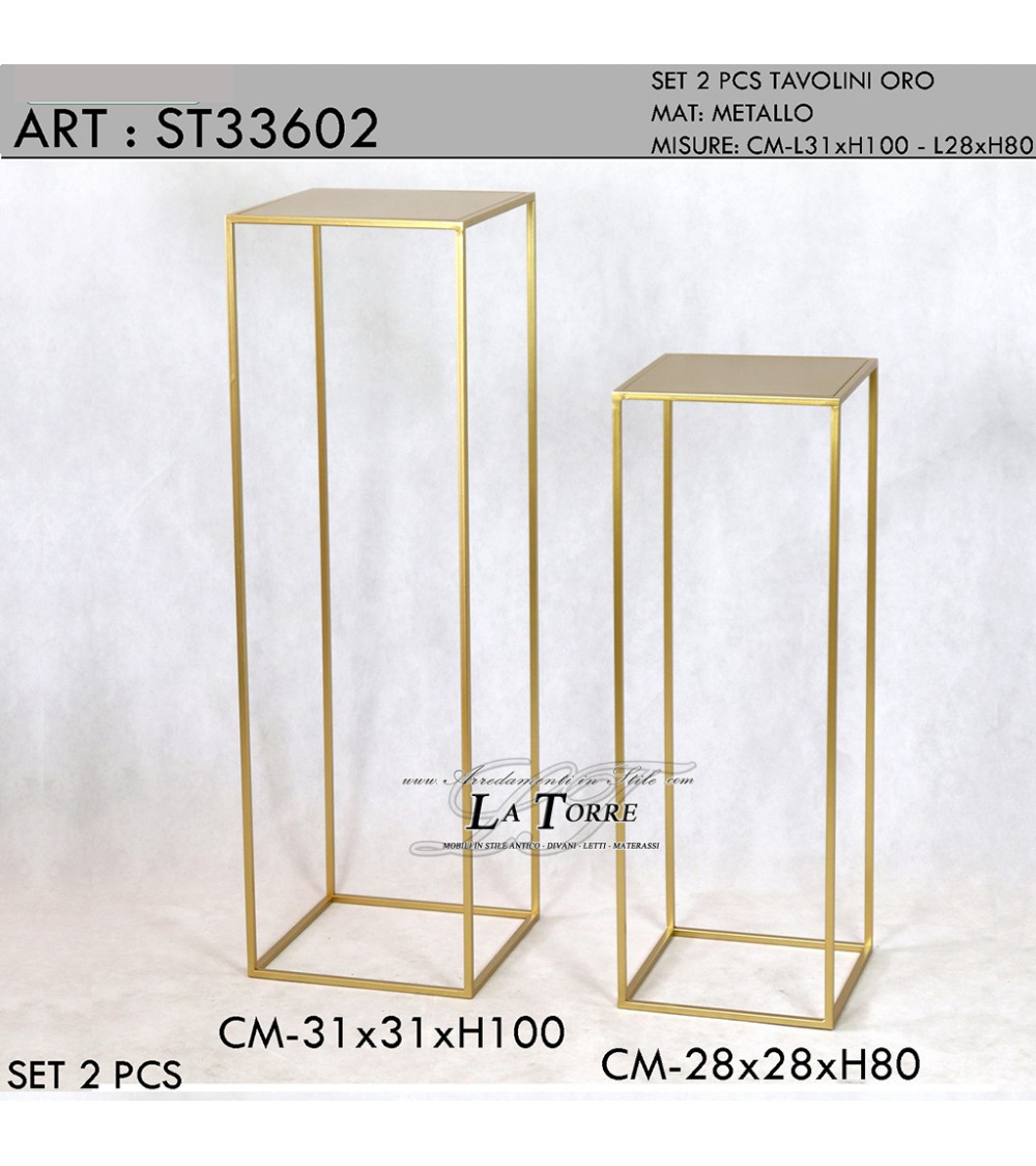 Set due tavolini da salotto porta oggetti moderni quadrati in metallo colore oro ST33602