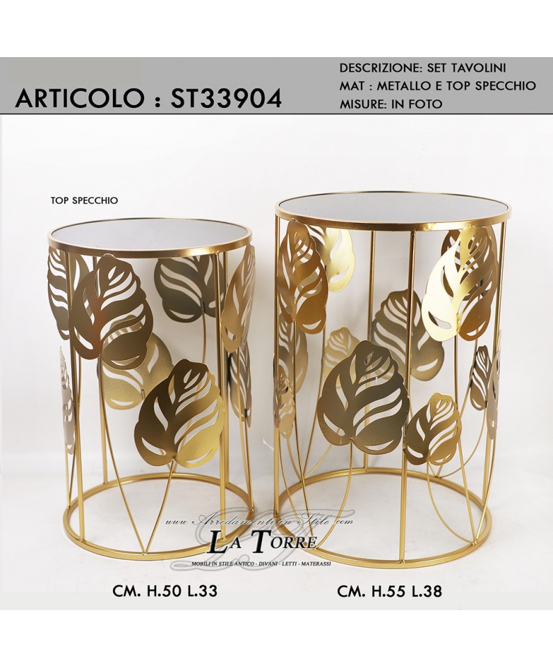 Set due tavolini foglie da salotto porta oggetti moderni rotondi in metallo colore oro ST33904