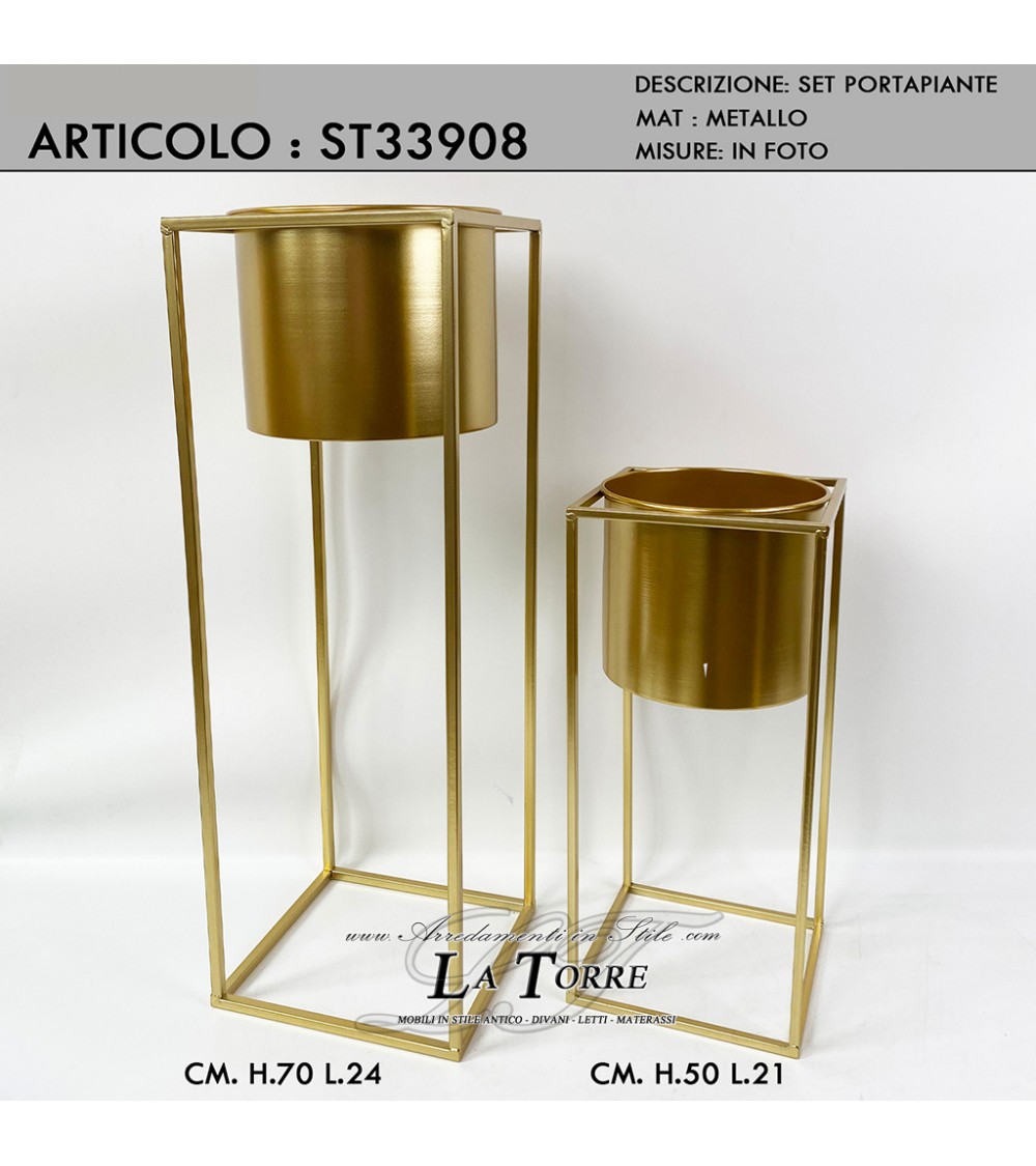 Set due porta piante da salotto moderni quadrati in metallo colore oro ST33908