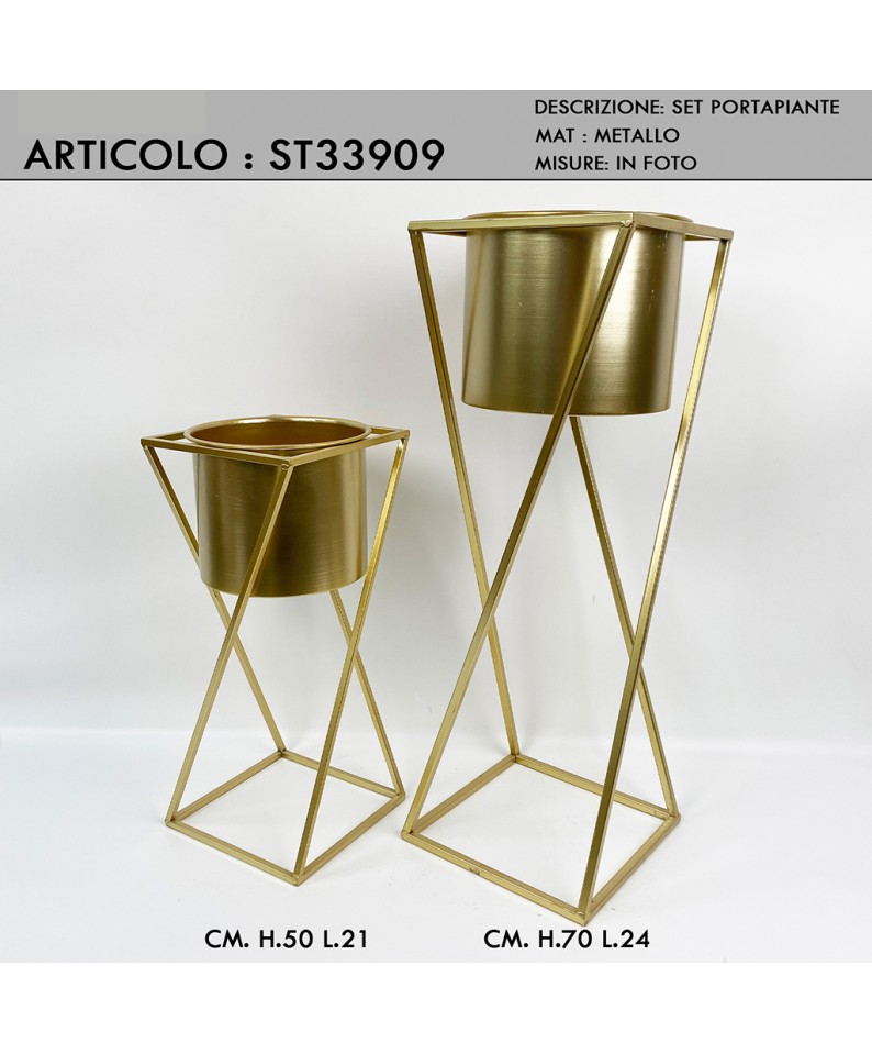 Set due porta piante da salotto moderni quadrati in metallo colore oro ST33909
