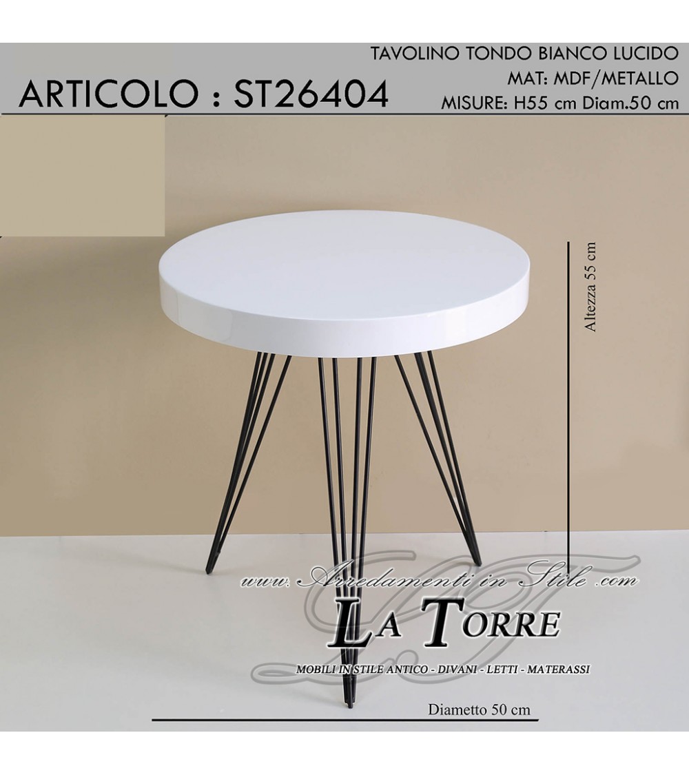 Tavolino Consolle salotto tondo moderno con piedi in metallo bianco lucido ST26404