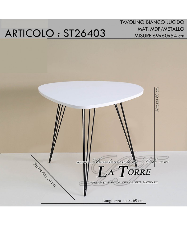 Tavolino Consolle salotto asimmetrico moderno con piedi in metallo bianco lucido ST26403