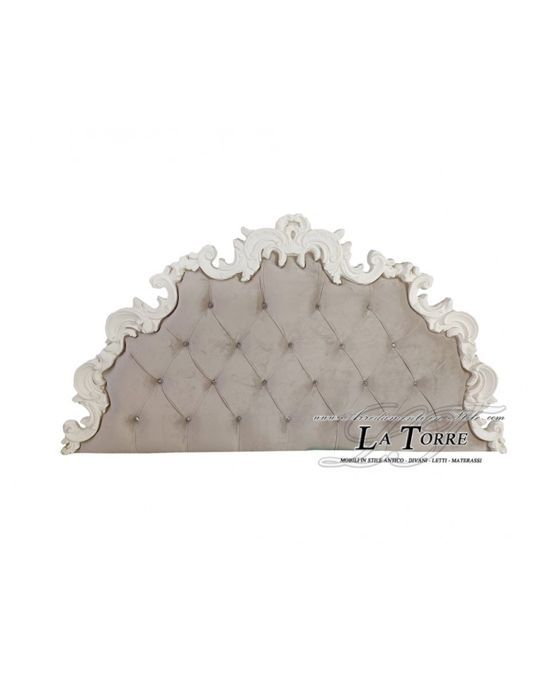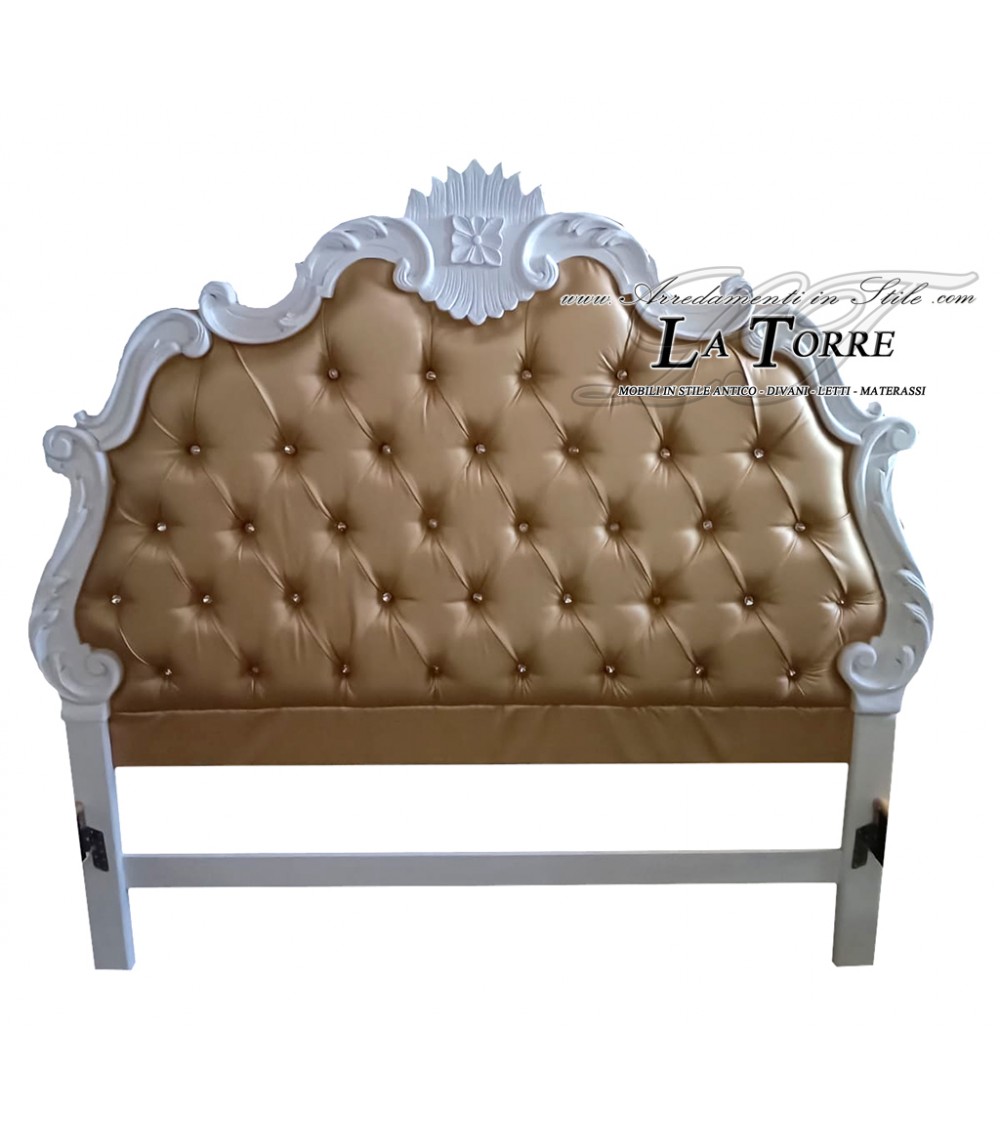 Testiera Testata Letto King Size Matrimoniale Barocco ecopelle o Tessuto legno argento oro qualsiasi colore Fabiola