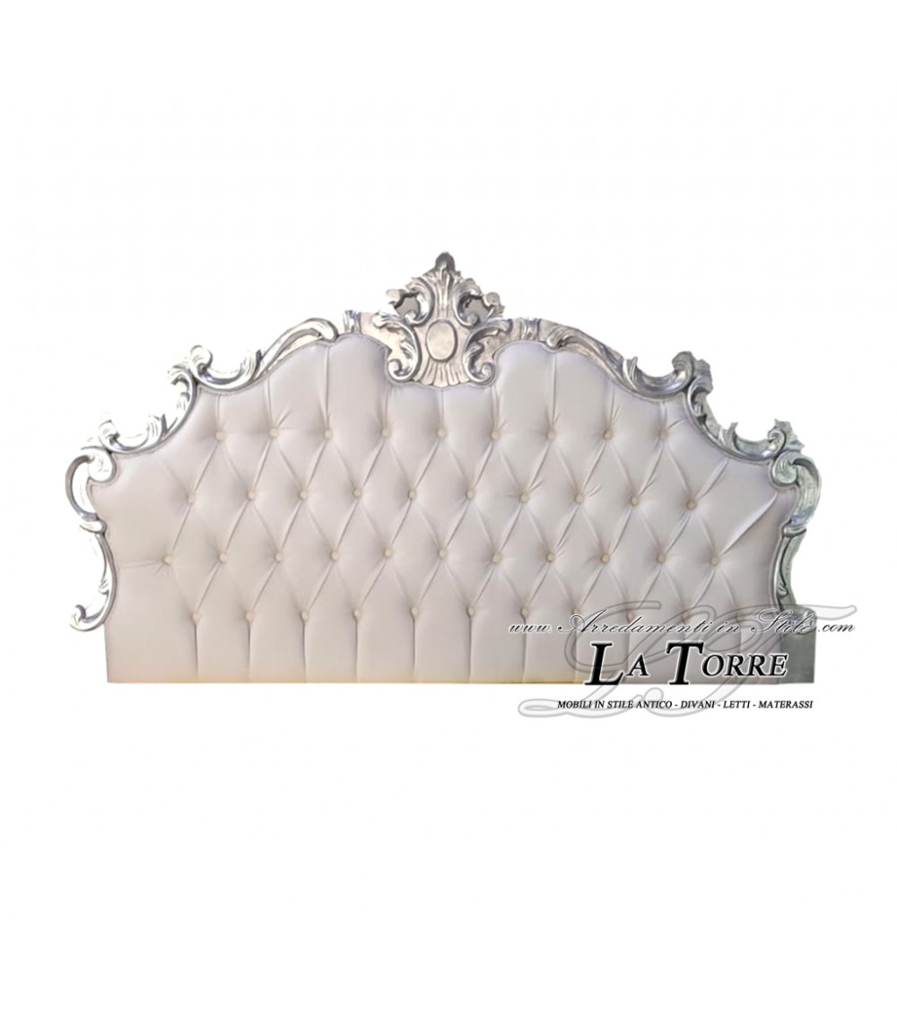 Testiera Testata Letto king size Matrimoniale Barocco ecopelle Tessuto legno argento qualsiasi colore Giselle
