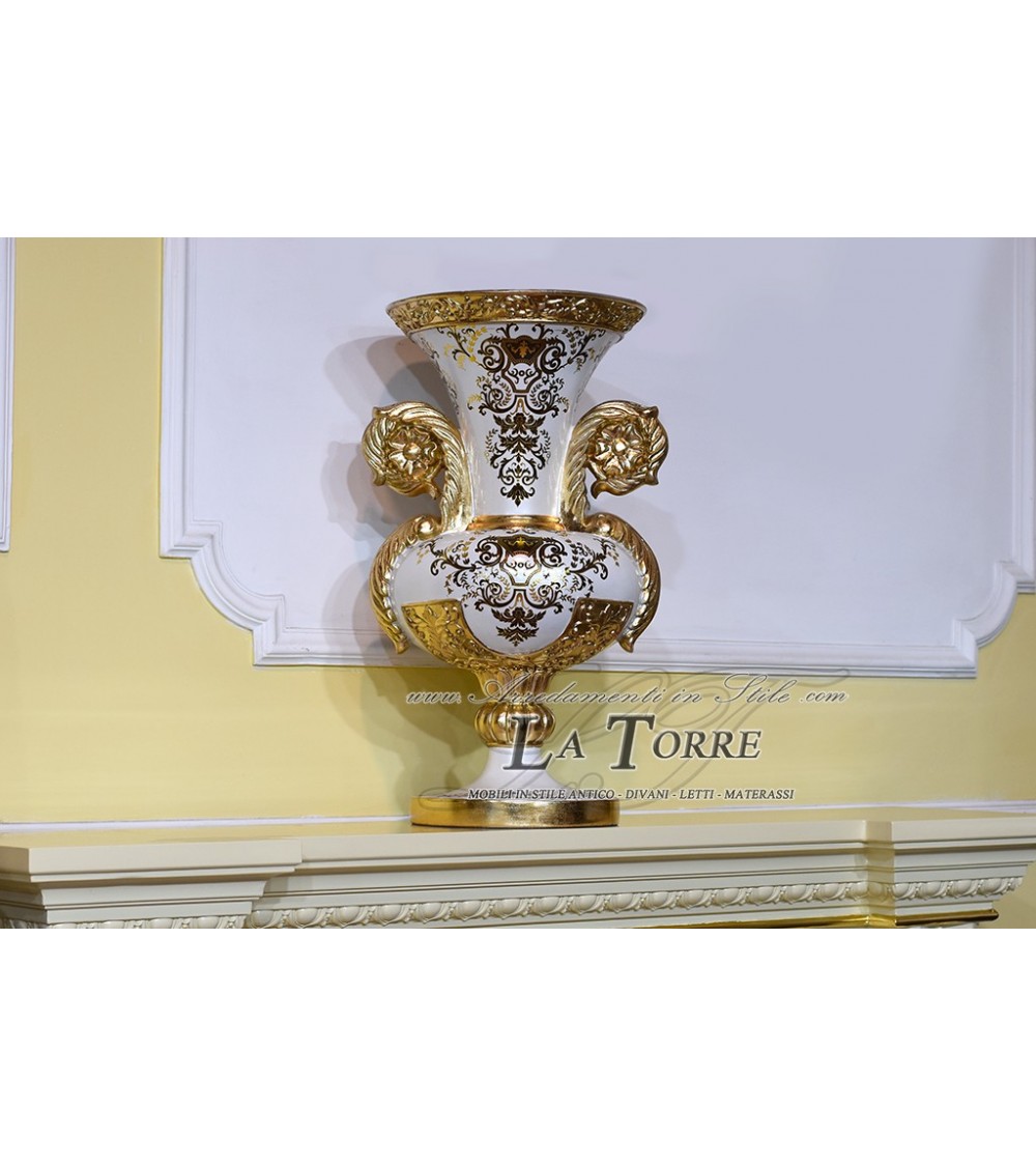Anfora coppa ceramica centrotavola avorio vaso foglia oro soprammobile DS17