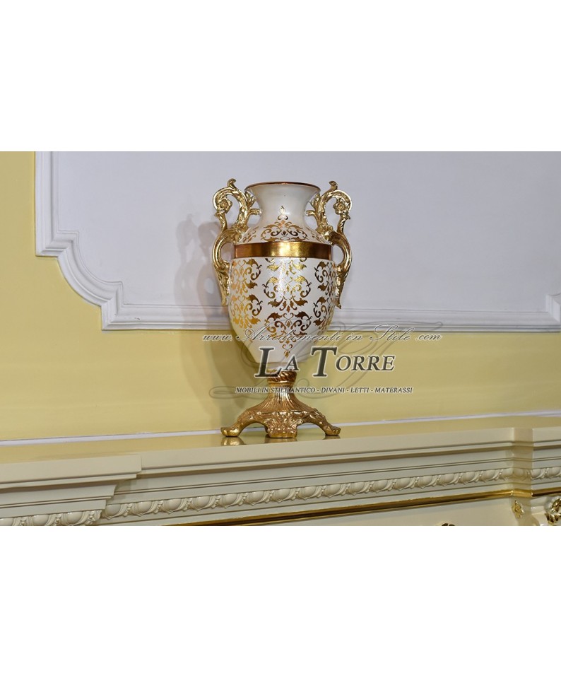 Anfora coppa con manici ceramica centrotavola avorio vaso oro soprammobile DS37