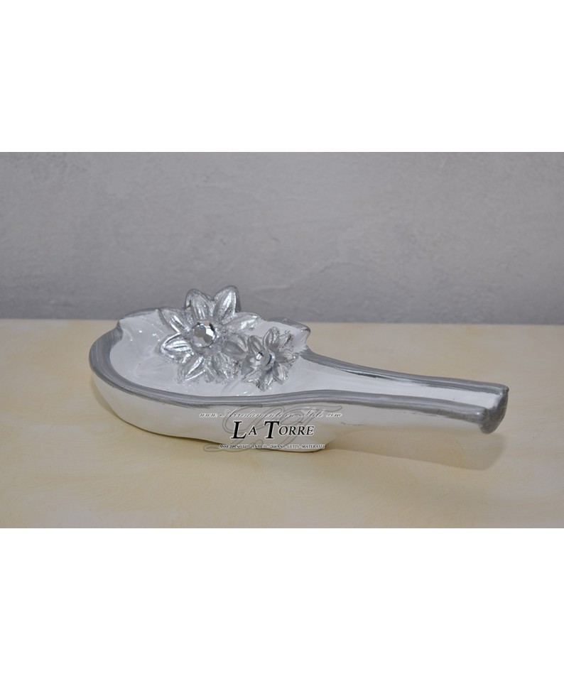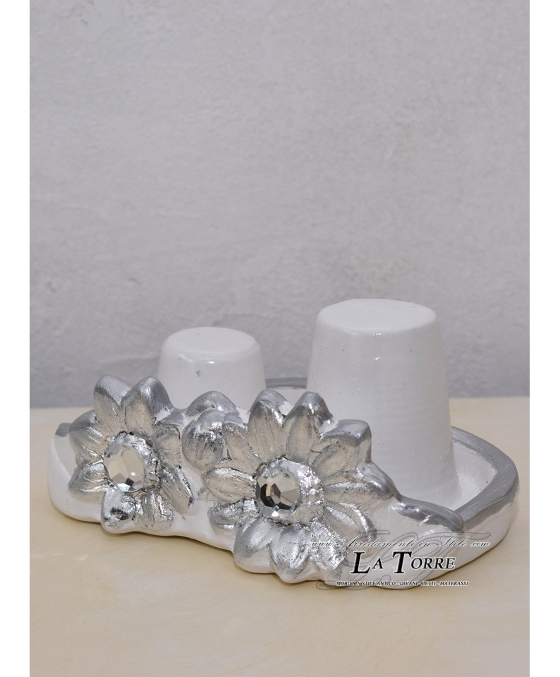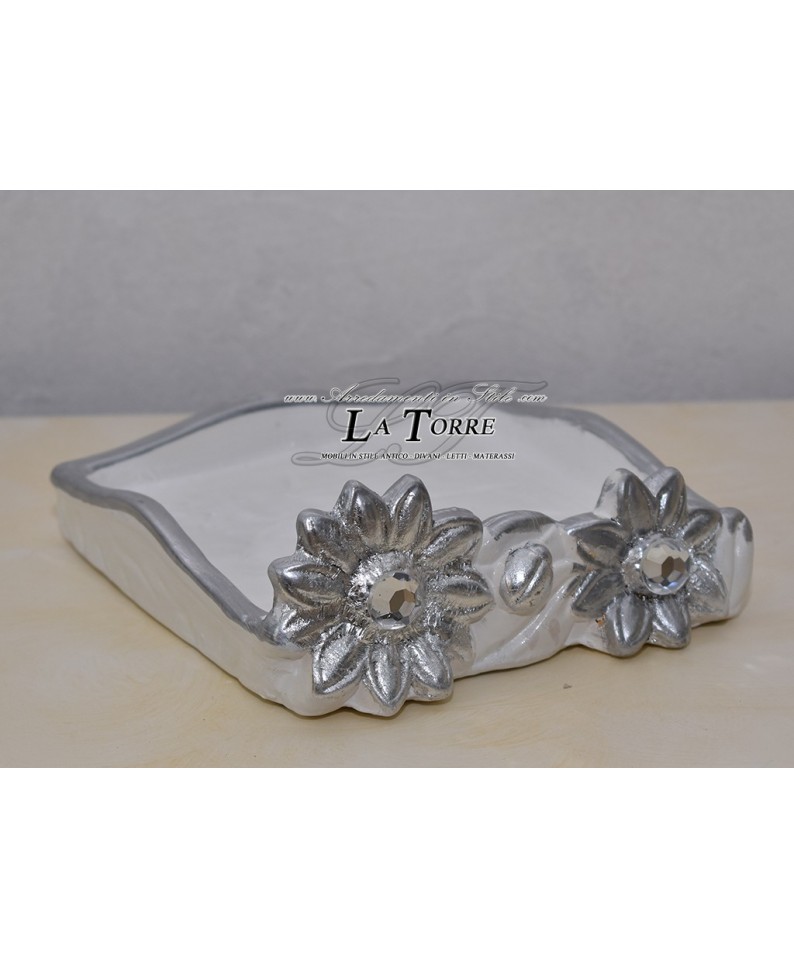 Colore: Bianca con particolari in foglia argento (su richiesta disponibile qualsiasi colore)