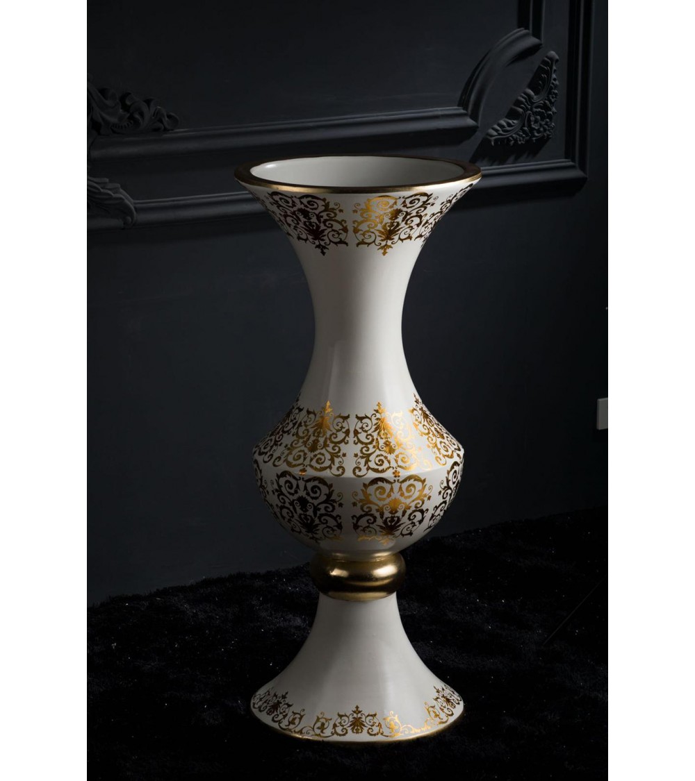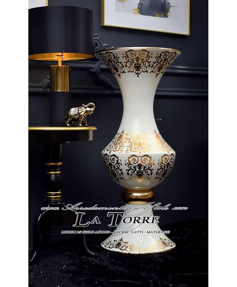 Vaso in ceramica coppa anfora h125 Dafne avorio e oro Vi37