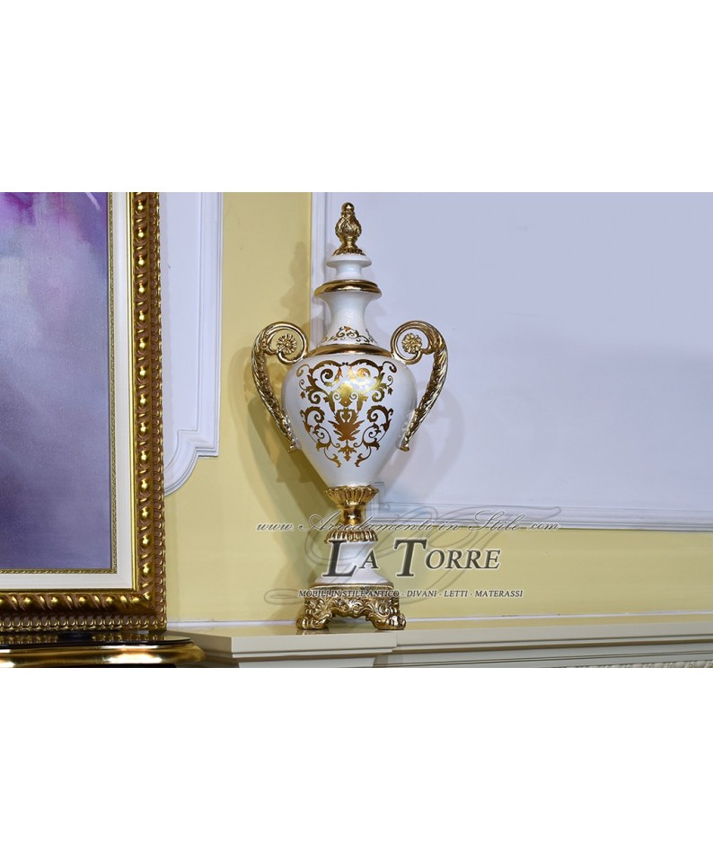 Vaso Anfora coppa centrotavola ceramica h80 avorio foglia oro soprammobile Vi12
