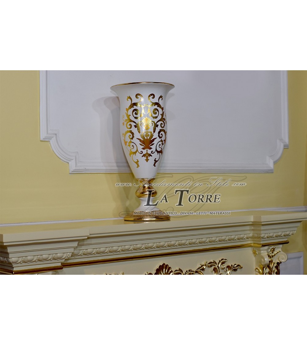 Anfora coppa ceramica centrotavola barocco avorio vaso foglia oro soprammobile Vi14