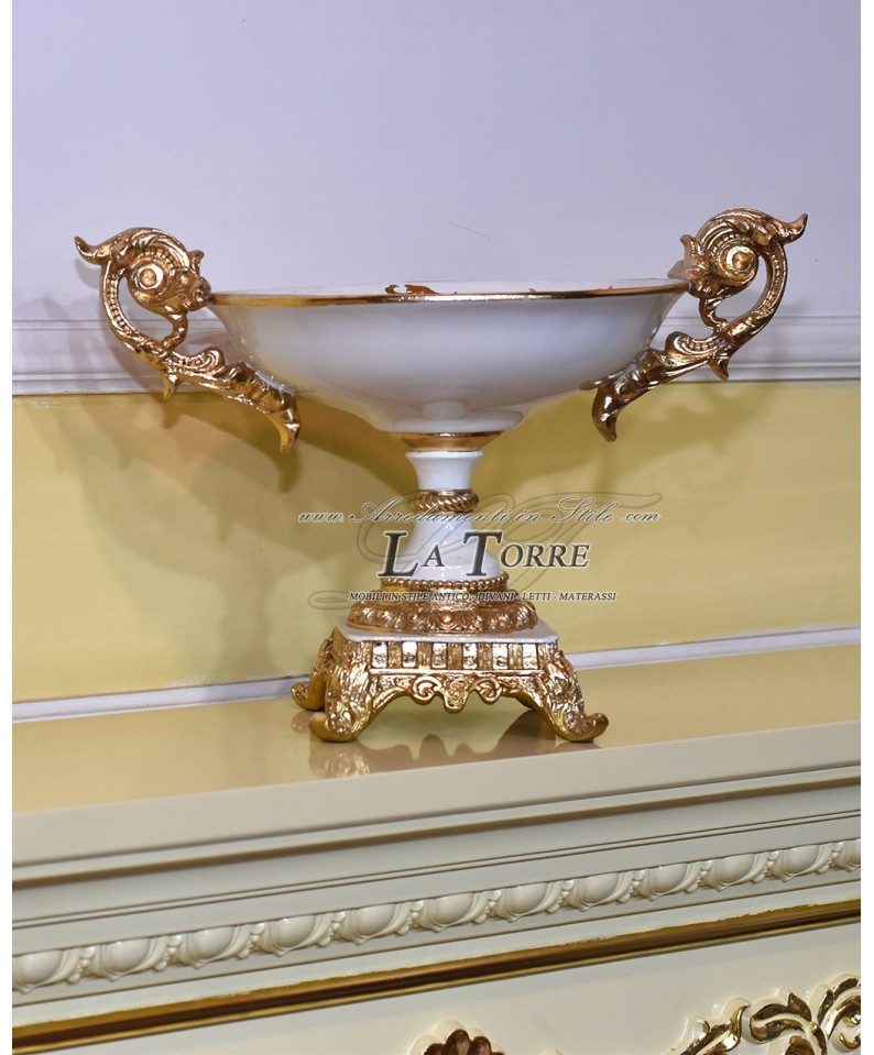 Portaconfetti alzatina ceramica centrotavola avorio oro soprammobile Vi20