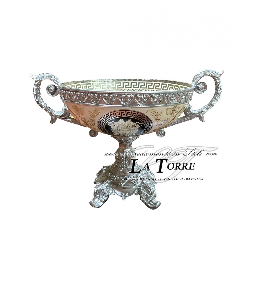 Anfora coppa con manici ceramica Dea Medusa centrotavola bianco argento soprammobile MED02