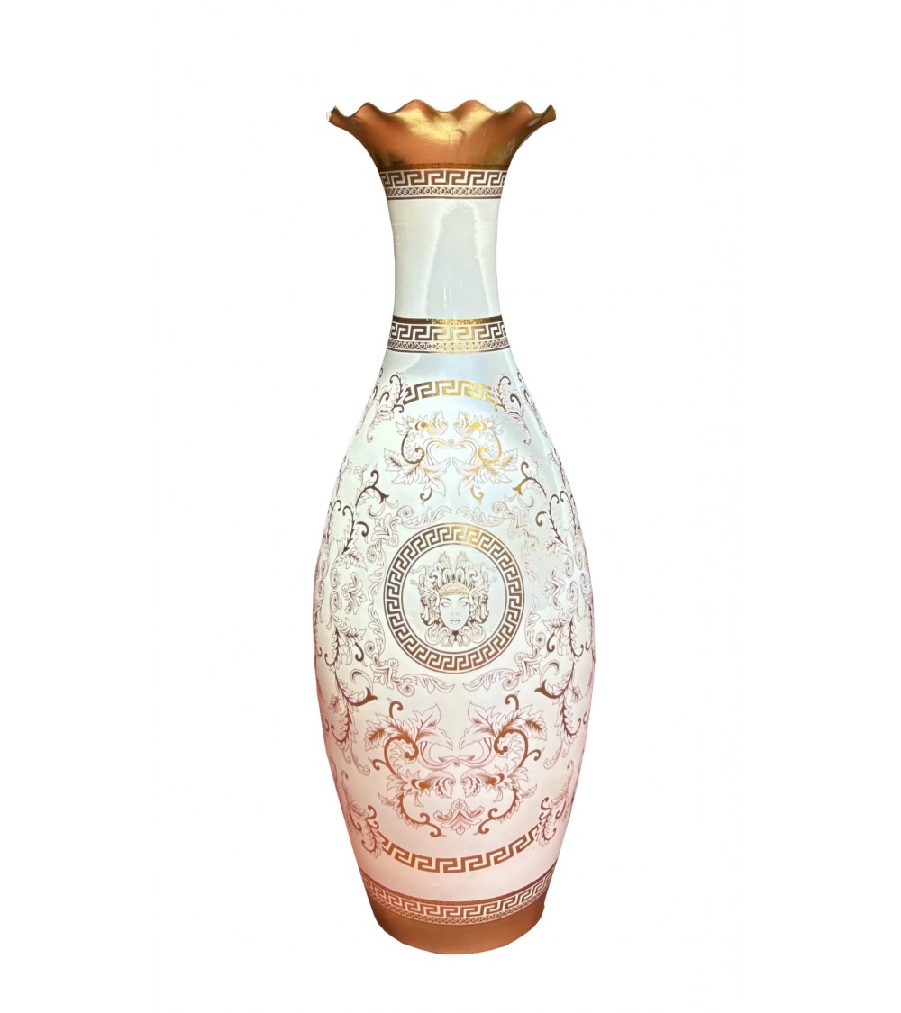Vaso smerlato da terra H140 in ceramica Dea Medusa coppa anfora avorio e oro MED12
