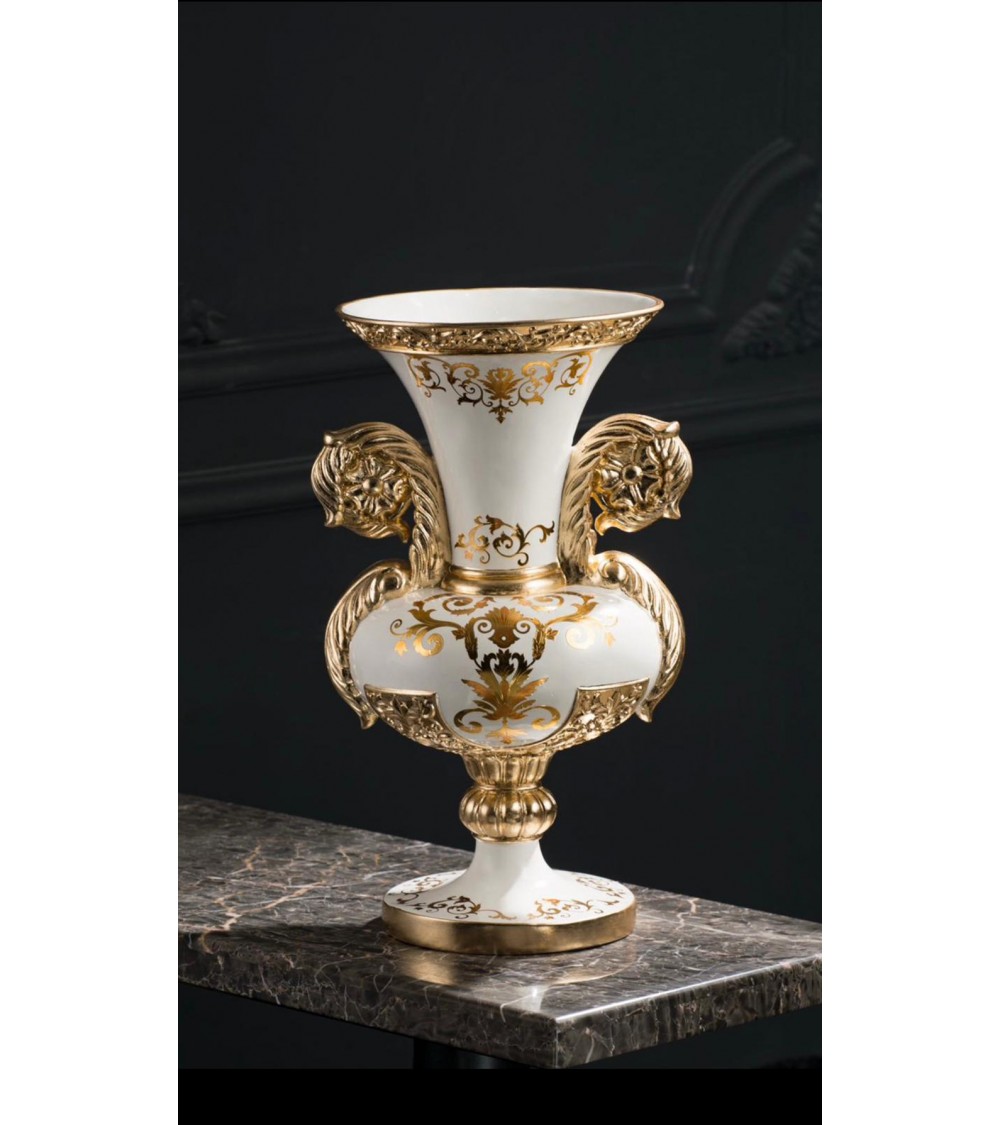 Anfora coppa ceramica centrotavola barocco 62 h avorio vaso foglia oro soprammobile Vi41