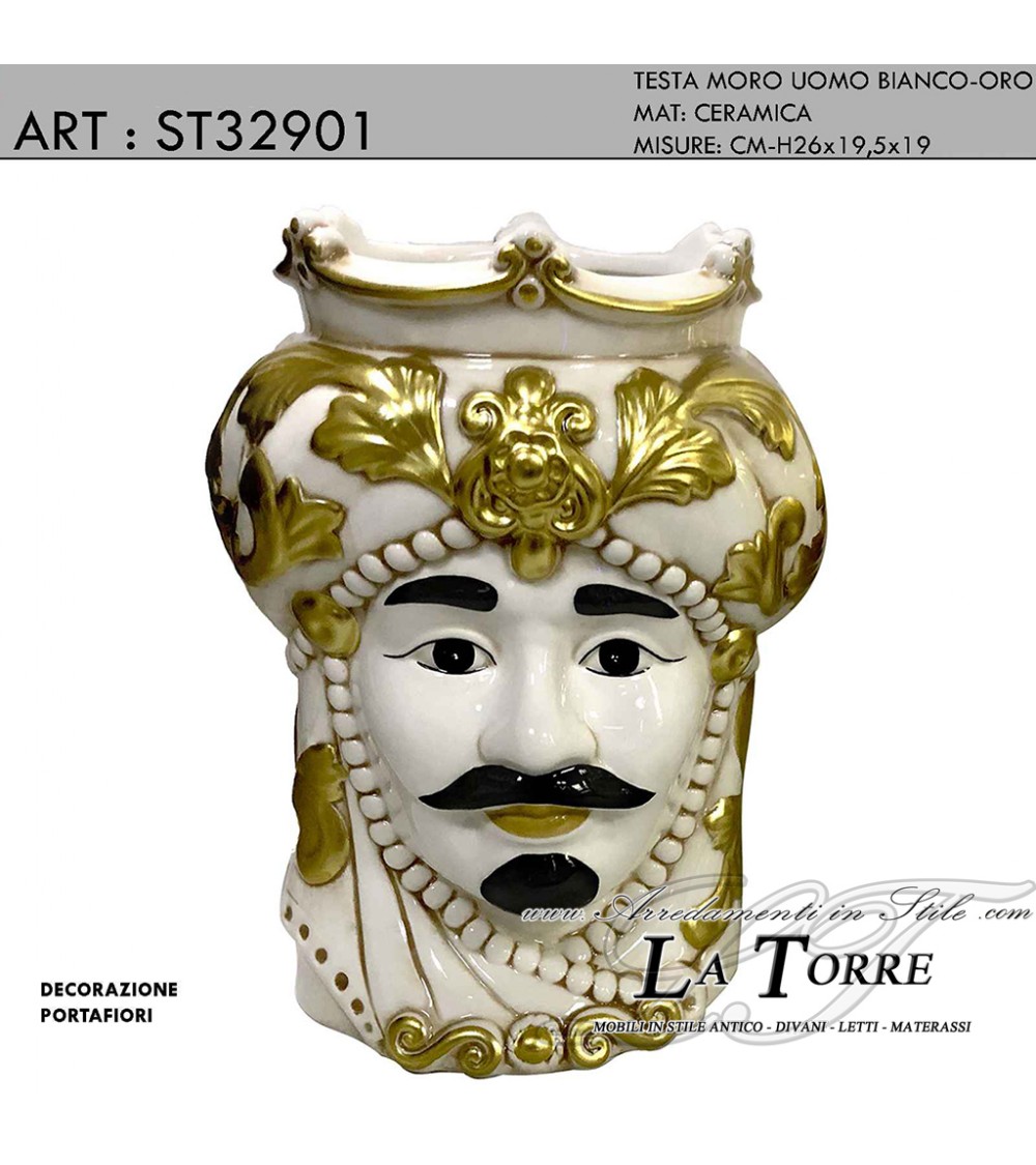 Statua scultura testa di Moro uomo Vietri portafiori 26h cm bomboniera in ceramica ST32901