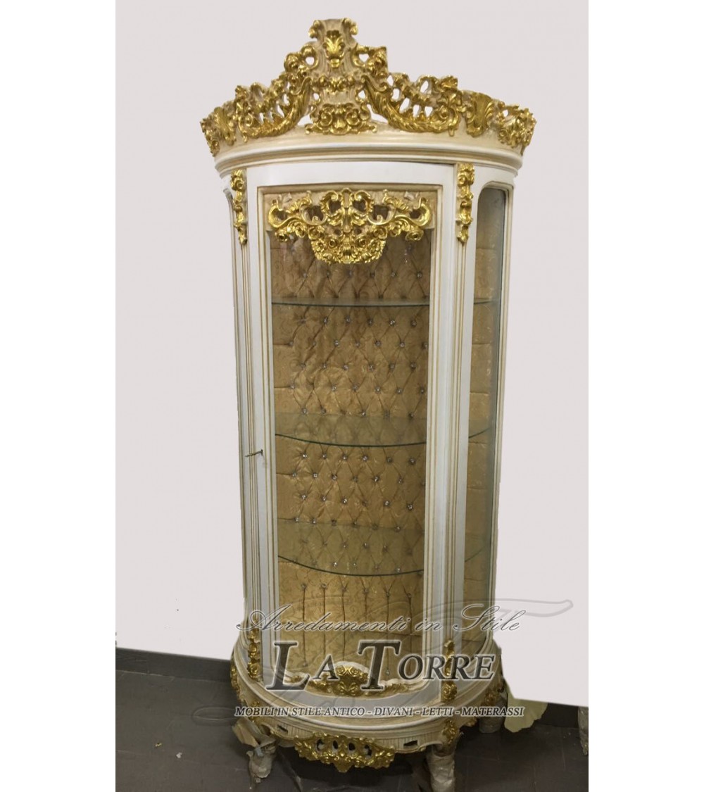 Vetrina Francese in legno massello AVORIO E ORO CRISTALLIERA wa0065
