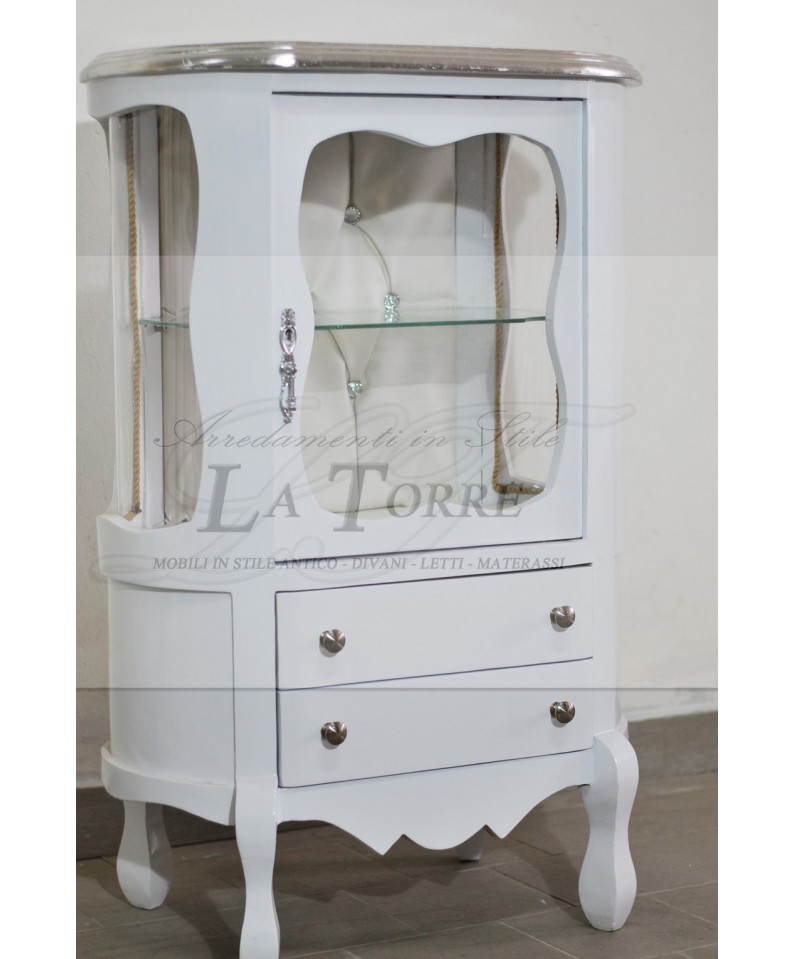 Vetrina classica bianco e argento cristalliera Luigi XV swarovski LT0111