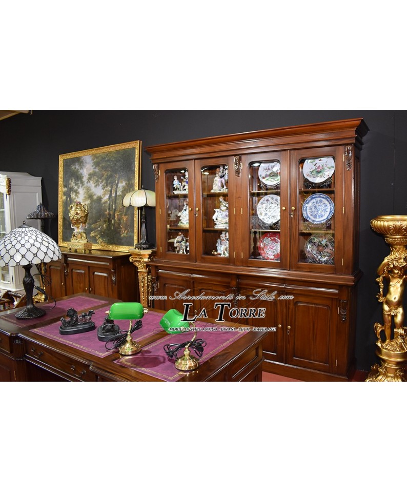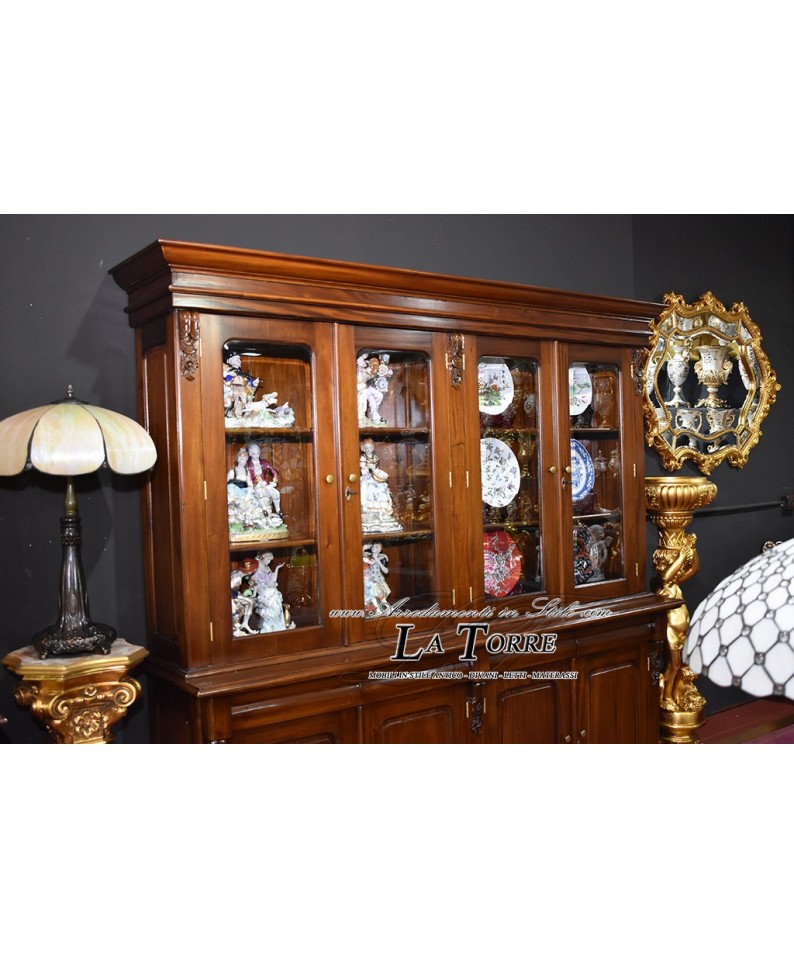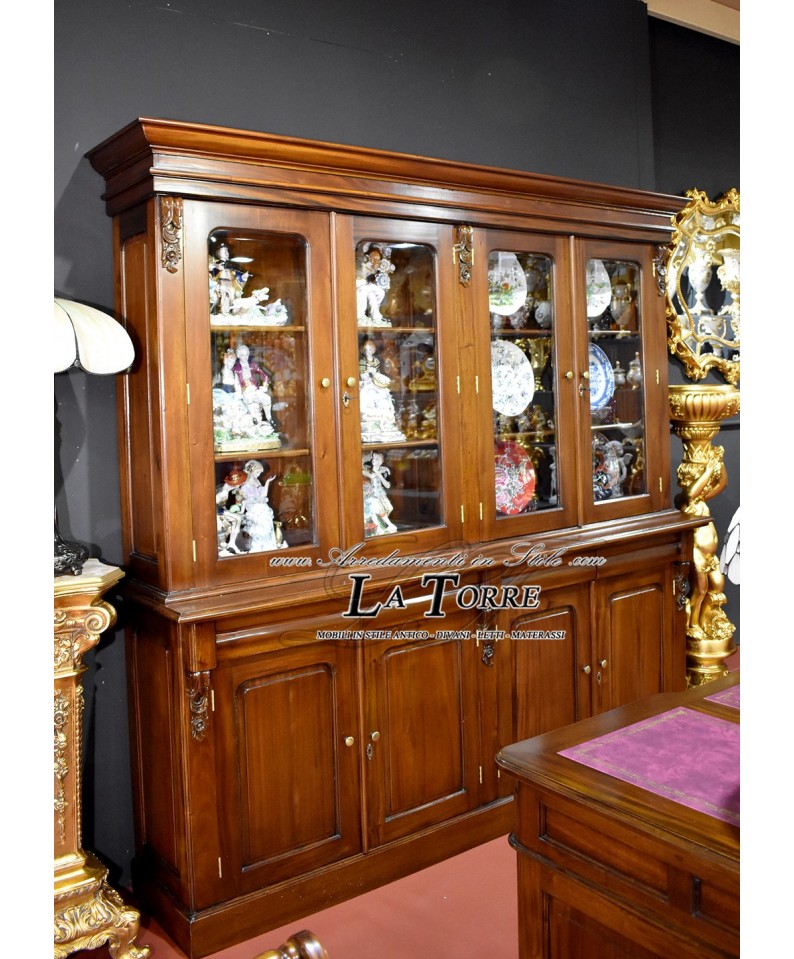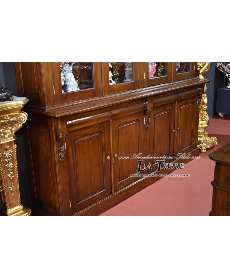 Libreria Annette Stile Vittoriano Inglese Vetrina Cristalliera Credenza Ministeriale Presidenziale Noce 8 Porte 4 Cassetti Na04