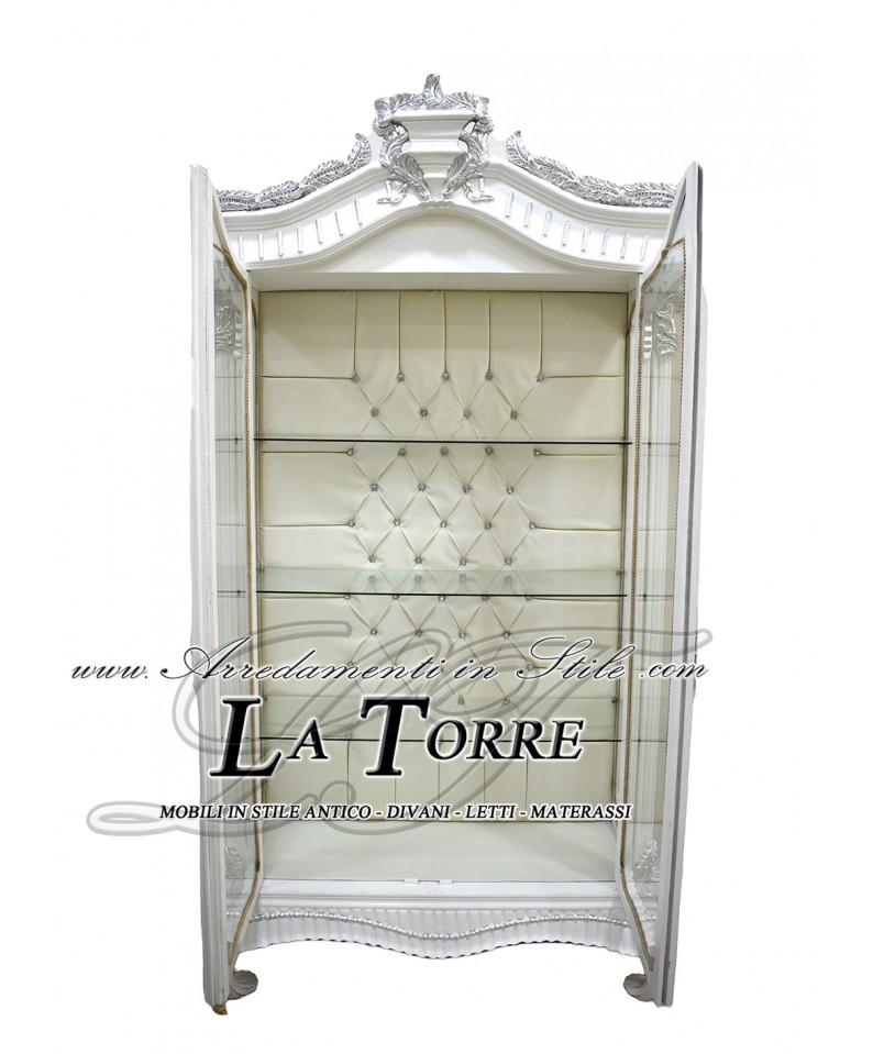 Vetrina cristalliera bianca e argento Luigi XV Barocco ecopelle bianca swarovski LT3039